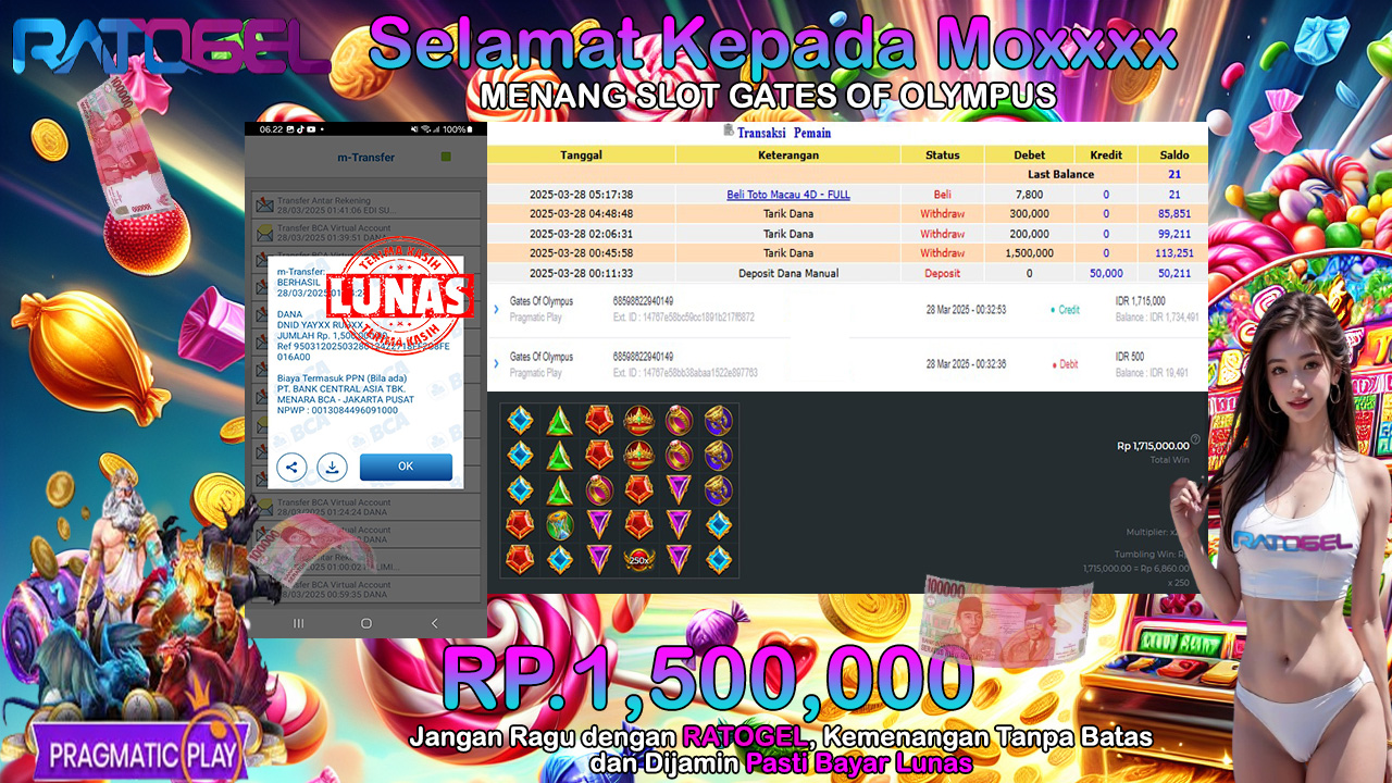 Selamat kepada member setia RATOGEL yang sudah berhasil menang SLOT GATES OF OLYMPUS Terpercaya di INDONESIA